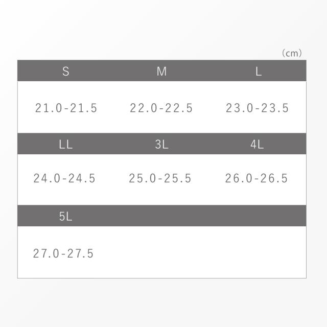 ■サイズ(3E/足囲):S/21.0-21.5(22.4)、M/22.0-22.5(23.1)、L/23.0-23.5(23.8)、LL/24.0-24.5(24.5)、3L/25.0-25.5(25.2)、4L/26.0-26.5(25.9)、5L/27.0-27.5(26.6)cm