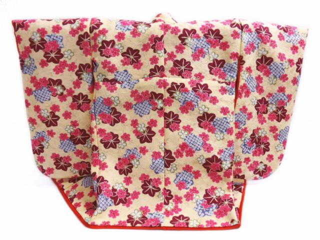 正絹ミニチュア着物=振袖&衣桁セットベージュ地桜紅葉 インテリア飾りに