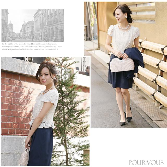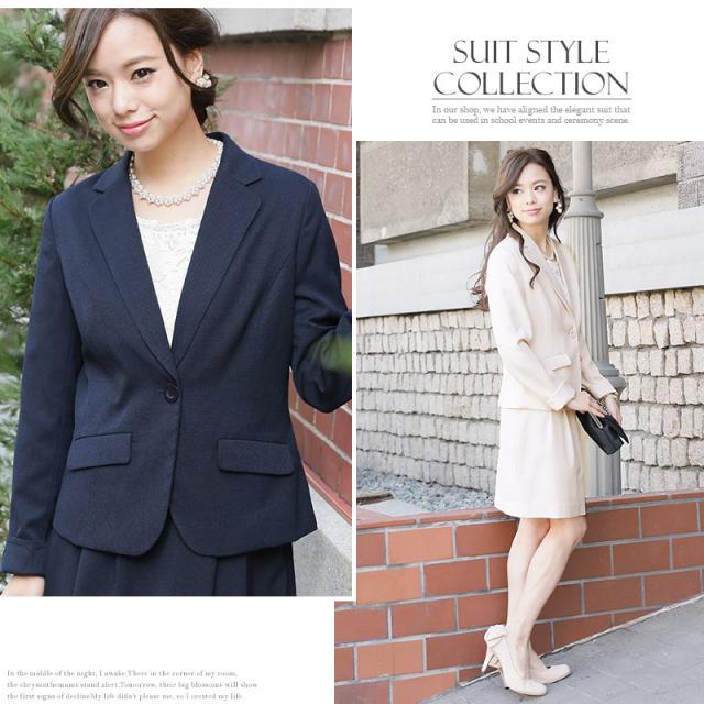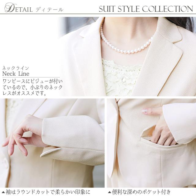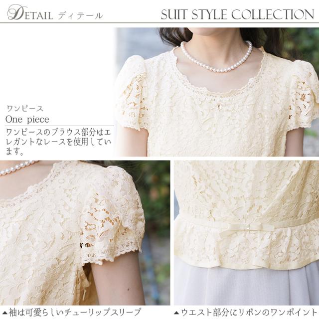 ☆ベーシックなテーラードジャケットとレースを使用したワンピースのセットスーツ。