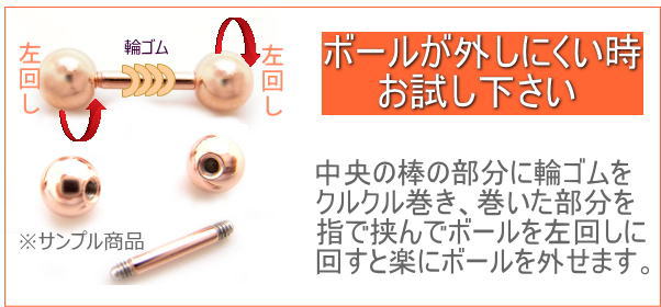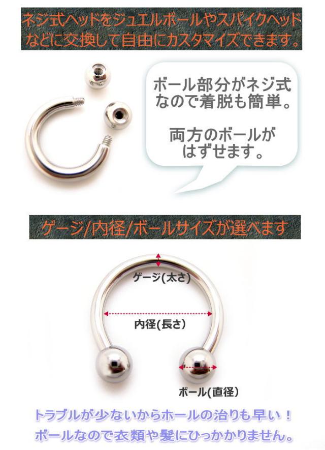 両端がネジ式のボールになっているので装着しやすく、316Lサージカルステンレス(医療用ステンレス)なので安心です。