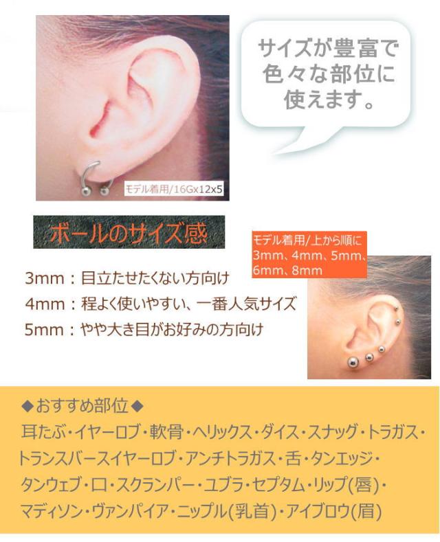 耳たぶ以外にも耳の軟骨、眉、ニップルなど色々使えます。