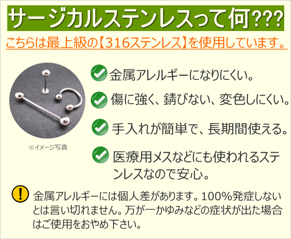 素材 :サージカルステンレス316L(医療用ステンレス)