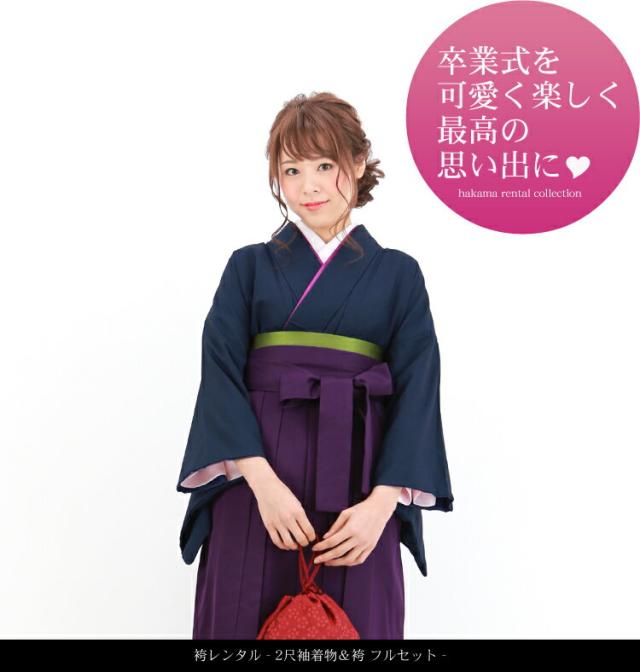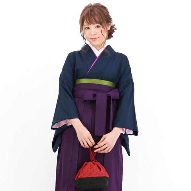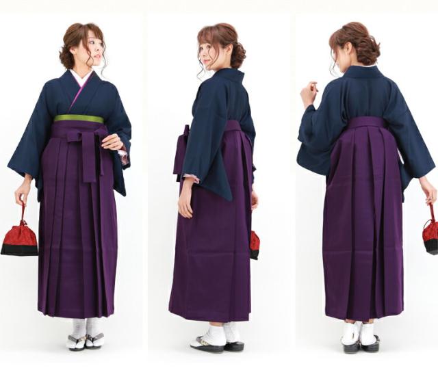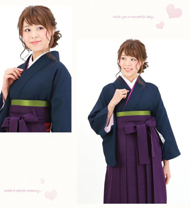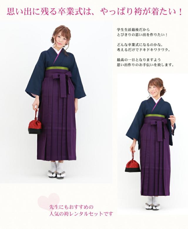 卒業式 袴 レンタル 女 袴セット 教員 卒業式袴セット着物&袴 フルセットレンタル「紺の色無地」