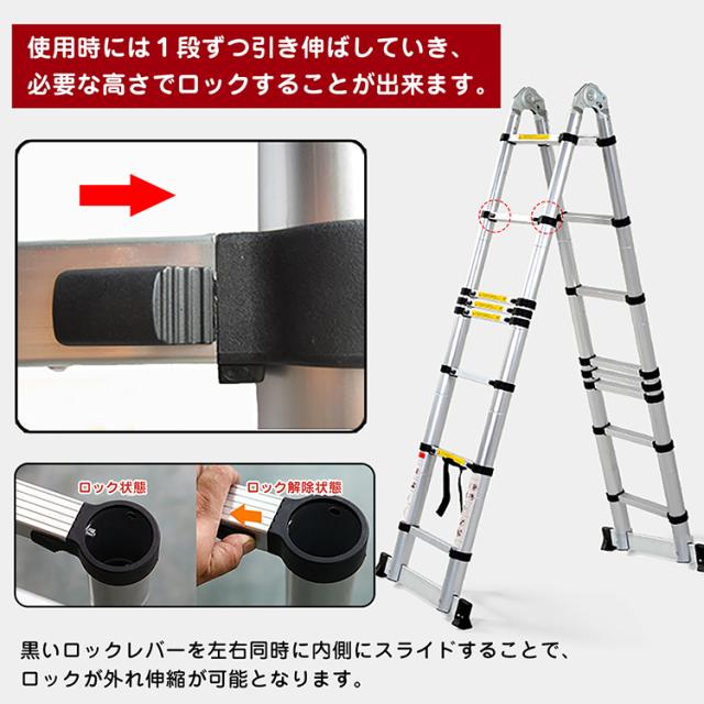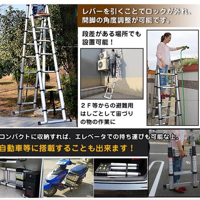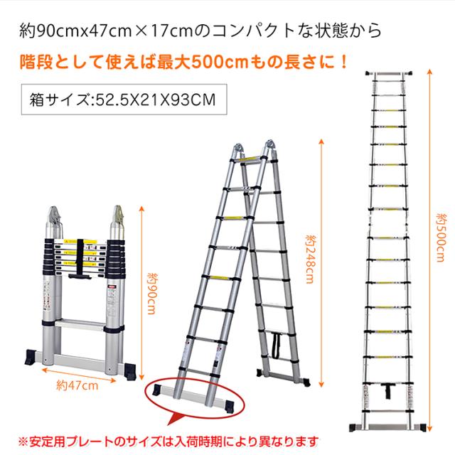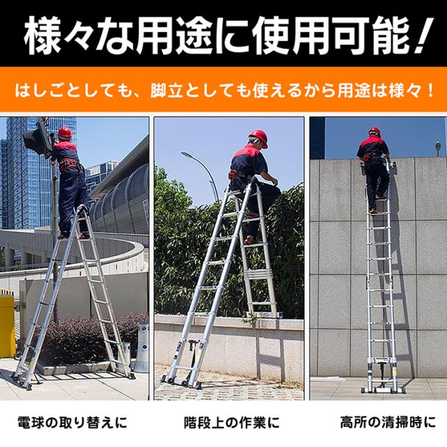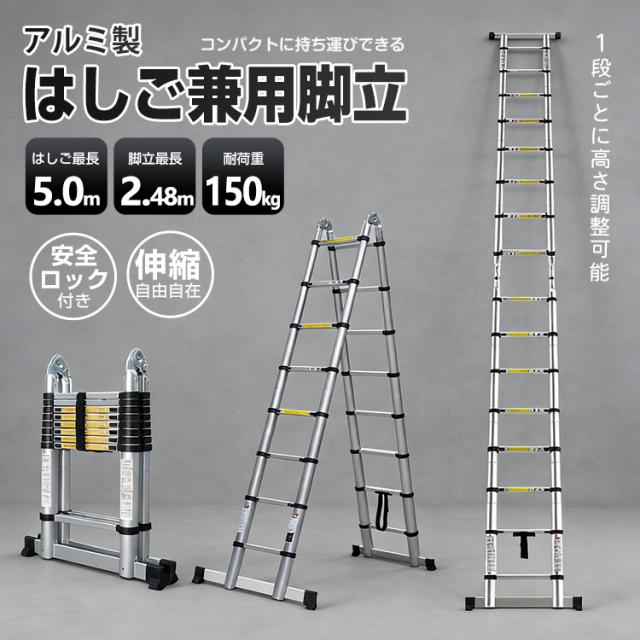 脚立 伸縮 伸縮梯子 はしご兼用脚立 5m 折り畳み アルミ製 作業台 洗車台 zk110