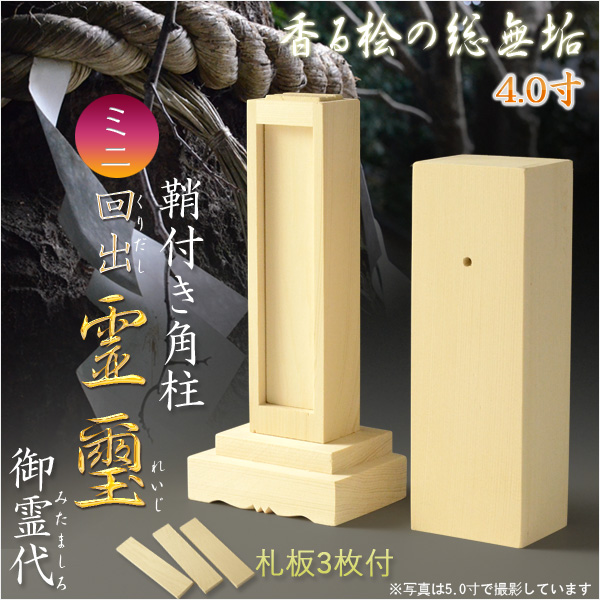 霊璽・御霊代【天然木総桧:鞘付き角柱ミニ回出霊璽 4.0寸】繰り出し霊璽 神道 祖霊舎 神徒壇 祭壇宮 御霊舎 霊舎 霊床 霊棚