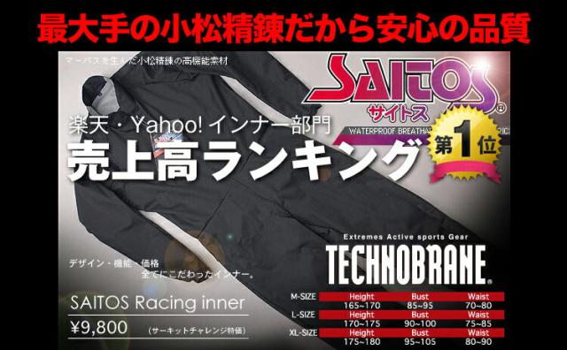 | サイトスインナーは高防寒性能、超低価格のハイスペックインナースーツです。 冬場の走行会、レース、ツーリングなどでレーシングスーツを活用される方にオススメです! 冬用レーシングインナーって高額ですよね?(市場価格¥15,000前後)超高機能素材を採用した低価格冬用ハイスペックインナースーツの登場です。冬場の走行会、冬場のレース活動、冬場のツーリングなど寒い季節のとっておきの商品です! 【商品内容】 1.サイトスレーシングインナー ■商品の特徴■ 1.透湿性・・・汗の放出機能があってムレがない 2.防風性・・・衣服内への寒風の進入を防ぐ 3.防水性・・・外部からの雨・水の進入を防ぐ 4.耐水性・・・水に対する耐久性が高くヌレ感がない 5.レーシングスーツの脱着をスムーズにします。 6.機能素材を採用した低価格のレーシングインナーです。 ■ライディングを考慮した機能性■ ★襟の高さを高くし、襟元には風の進入を防止する前立てを装備。 ★袖口、裾口には肌にやさしい伸縮性をもったトリコット生地を使用。 ★立体裁断を採用し運動性を向上させました。 ★前傾に対応したストレッチ機能。 ★裏地にメッシュをボンディングし汗の放出と保温機能を両立。 ■What'sサイトスインナー■ SAITOS INNERサイトスインナーは世界の繊維メーカー、「小松精錬株式会社」、「セーレン株式会社」が開発した特殊ウレタン透湿性フィルムを使用した高機能素材です。快適なウェアの必要条件である透湿性、防風性、防水性、耐水性を備えています。 本製品の加工は小松精錬株式会社の"サイトス"かセーレン株式会社の"テクノブレン"のいずれかを採用しております。どちらかを選ぶことはできませんので予めご了承ください。※生産時期によって異なります。 ![]() |