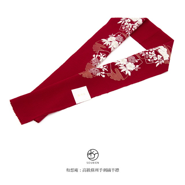 半襟 刺繍 振袖 成人式 半衿 卒業式 袴用 赤 レッド 源氏香 雪輪文 梅 松 桜 手刺繍 蘇州刺繍 縮緬 ちりめん 正絹 和想庵 フォーマル 和装小物 女性 レディース 日本製 送料無料