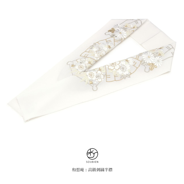 半襟 刺繍 振袖 成人式 半衿 卒業式 袴用 白 オフホワイト 扇面 桜 梅 菊 正絹 和想庵 フォーマル 和装小物 女性 レディース 送料無料