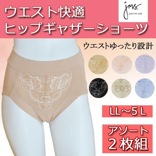 ■商品名:JUST MY SIZE ウエスト快適ヒップギャザーショーツ【アソート2枚組】(JMS2-012P)