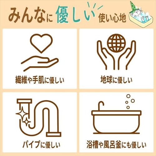 浴槽、風呂釜の材質を傷めず、ガンコな湯アカ、石けんカスを強力に分解し、ヌメリや皮脂汚れも簡単に落とします。