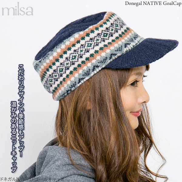 キャップ レディース [メール便可] 帽子 秋冬 つば付き ニット帽 CAP ネイティブ / ドネガルNATIVEドゴールキャップ
