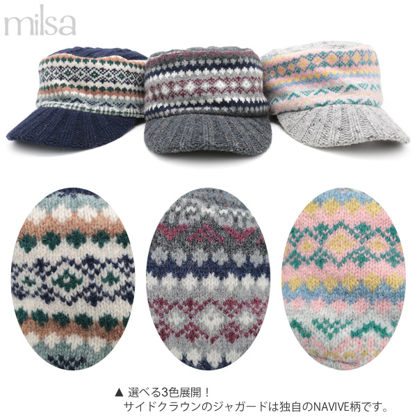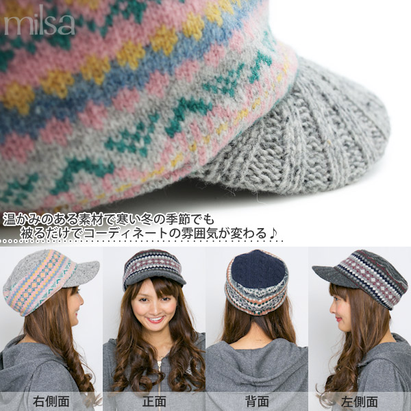 | 素材 | トップ・ツバ部分:毛80% ナイロン20% 柄部分:毛100% |