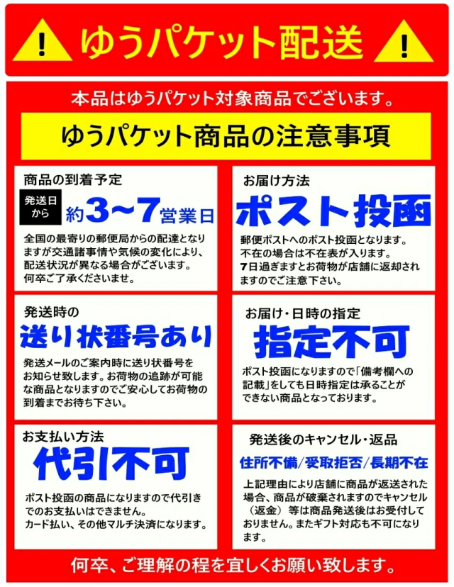 他の商品との同梱の際、同時購入商品が冷凍食品の場合、当商品は冷凍での配送となります。何卒ご了承下さいませ。