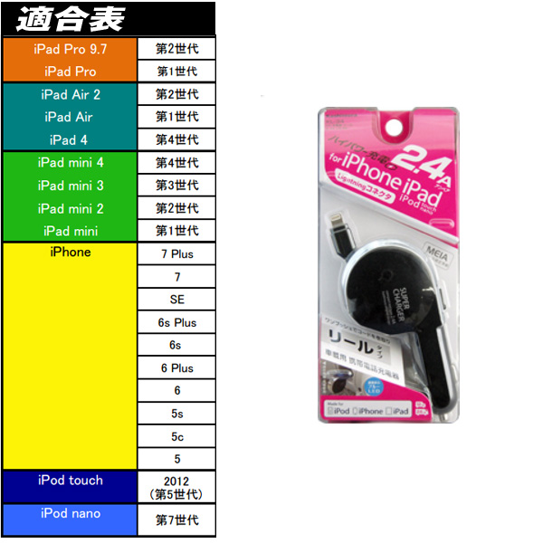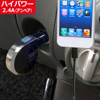 車のシガーライターソケットからLightningコネクタのiPad/iPhone/iPodをハイパワー2.4Aで充電可能なDC充電器。