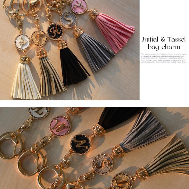 バッグチャーム タッセル イニシャル レディース 大人かわいい アルファベット (ar-ABCm)【メール便送料無料】 ゴールド ピンク 黒 白 スエード 誕生日 プレゼント ギフト チャーム デコ アクセサリー キーチェーン キーホルダー バックチャーム