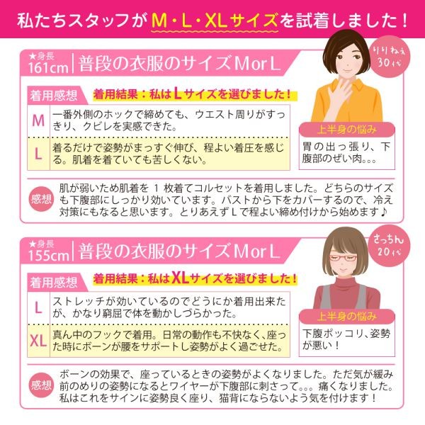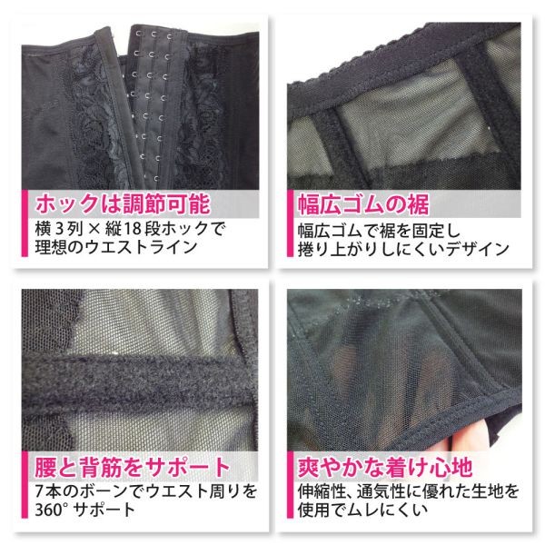 7本のスチールボーンがしっかりと姿勢矯正、お腹引き締め、腰痛サポートいたします。