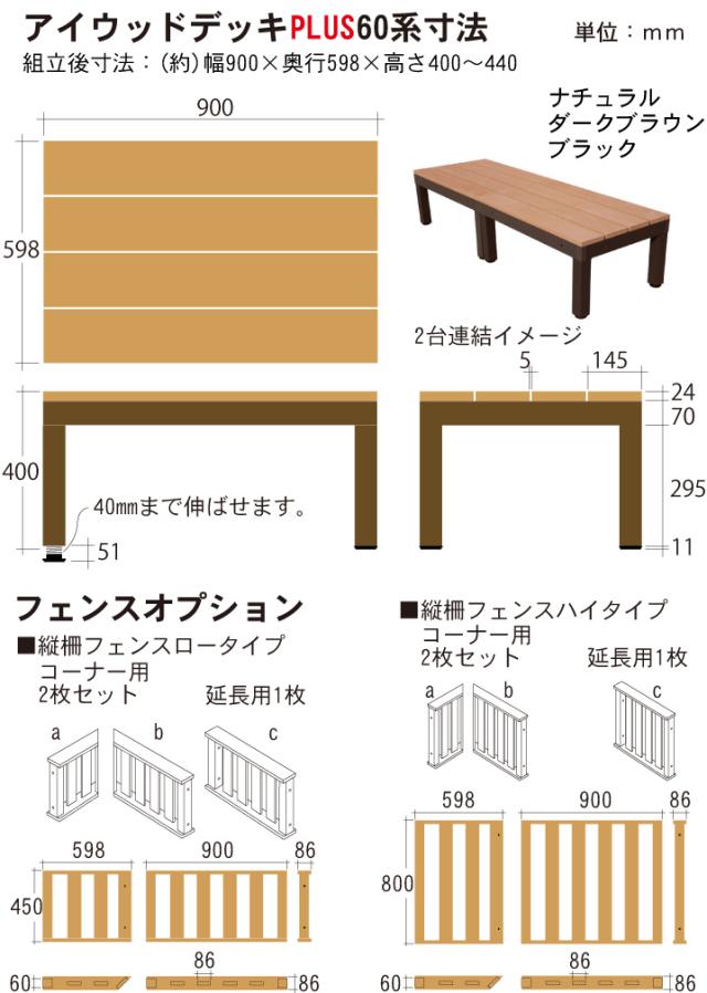 人工木 ウッドデッキ PLUS 60系 4点セット ブラック 90cmステップ1点 アイウッドデッキ アルミ合金ボディ 高さ4cm調節可能 省スペース設計 狭いお庭対応 デッキセット