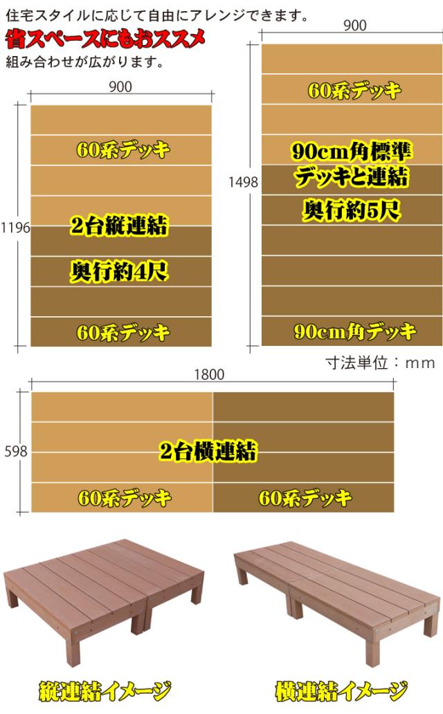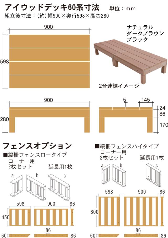 ウッドデッキ 人工木 60系 6点セット ダークブラウン デッキ本体2点 デッキフェンス3点 60cmステップ1点 アイウッドデッキ60系 縁台 10年以上の実績 色あせない 腐らない シロアリ防止 すべらない 床面ザラザラ加工 リアルな木質感