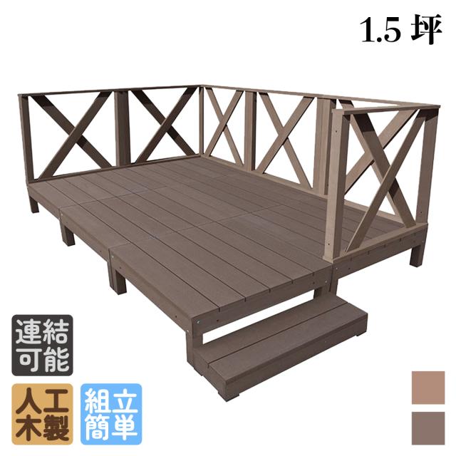 ウッドデッキ 人工木 1.5坪 13点セット ダークブラウン デッキ本体6点 ハイXフェンス6点 ステップ1点 アイウッドデッキ 10年以上の実績 色あせない 腐らない シロアリ防止 床面ザラザラ加工 リアルな木質感