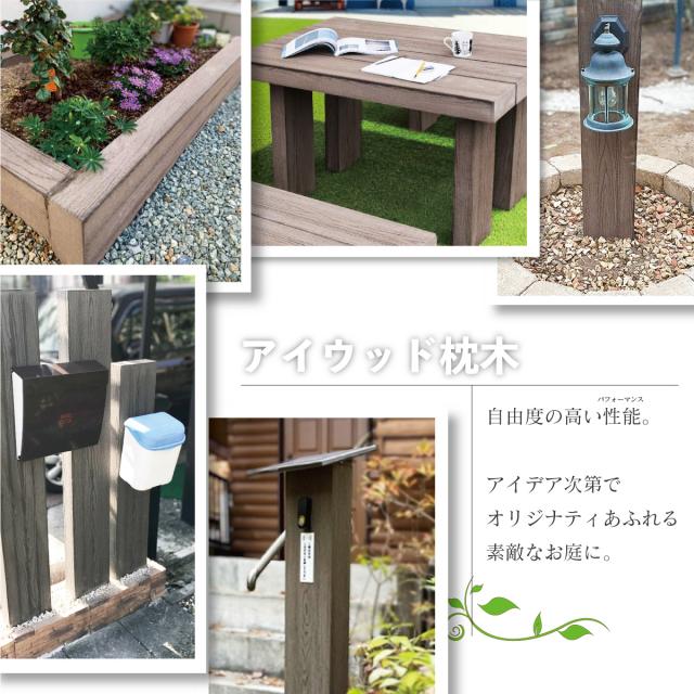 ◆アイウッド枕木はウッドフェンスとして、景観作りなどご利用できます。とっても軽くて、女性の方も設置可能です。