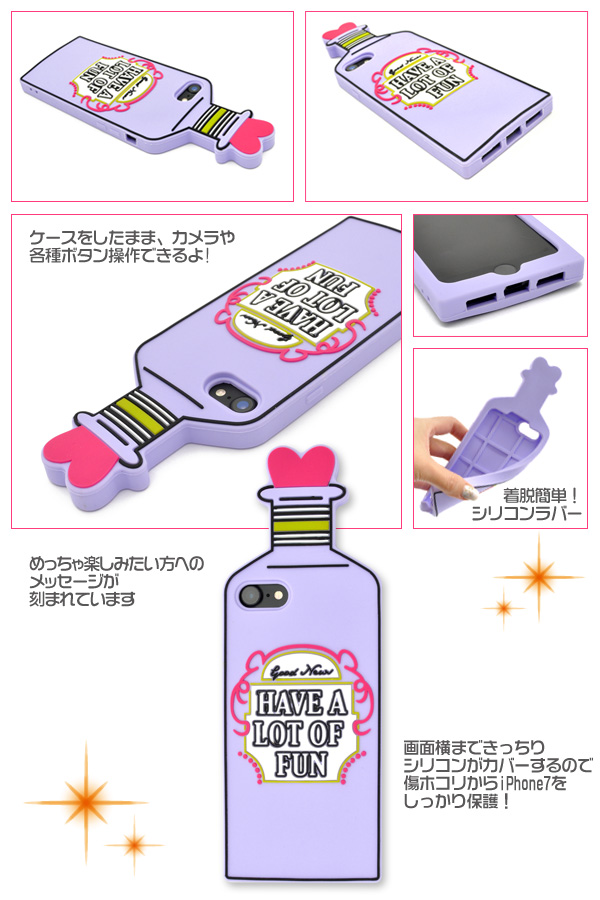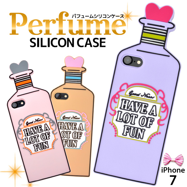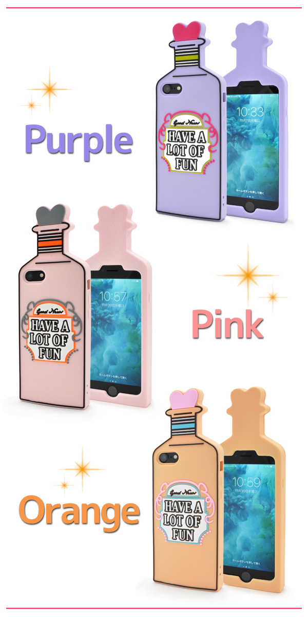 可愛い香水瓶デザインのシリコンラバーケース。 パステル系のパープル、ピンク、オレンジの3色展開!