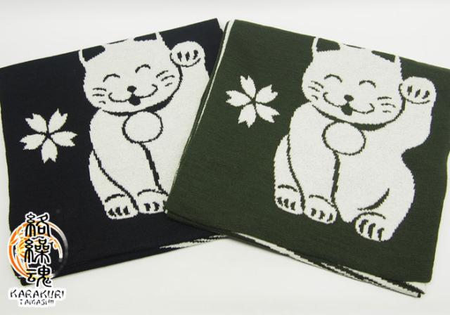 5390円を30%OFFセール 絡繰魂[からくりだましい] 笑い猫 ジャガード 和柄マフラー/日本製/264920