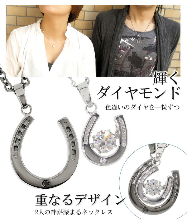 ペアネックレス 馬蹄 ダイヤモンド カップル ペアアクセサリー【新宿 銀の蔵】