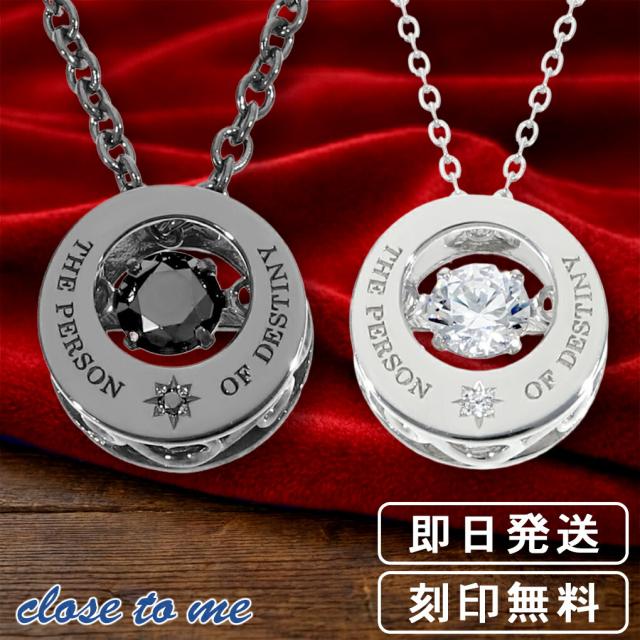 刻印無料 close to me ダンシングストーン ペアネックレス ペアペンダント ペアアクセサリー おそろい お揃い シルバー ブラックダイヤモンド