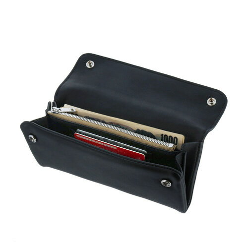 ライダースジャケット等に使われるレザー素材を使い作られたこちらの財布は、シンプルなデザイン・フォルムが老若男女問わずマッチします。