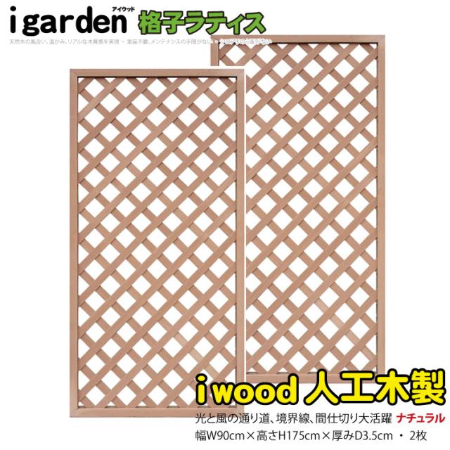 アイウッド 格子ラティス 人工木製 H175cmxW90cm 2枚セット ナチュラル 樹脂製 腐らない 色あせない 目隠しフェンス 日除け 外構資材 10年以上の実績