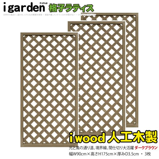 アイウッド 格子ラティス 人工木製 H175cmxW90cm 3枚セット ダークブラウン 樹脂製 腐らない 色あせない 目隠しフェンス 日除け 外構資材 10年以上の実績