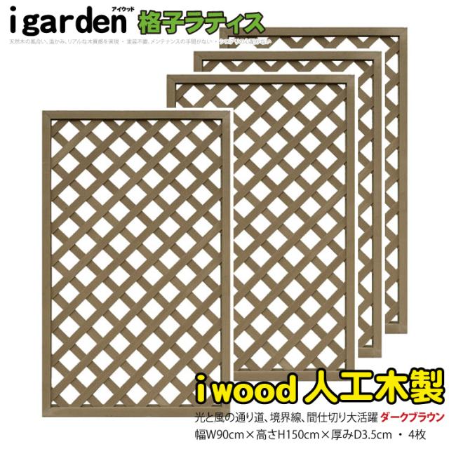アイウッド 格子ラティス 人工木製 H150cmxW90cm 4枚セット ダークブラウン 樹脂製 腐らない 色あせない 目隠しフェンス 日除け 外構資材 10年以上の実績