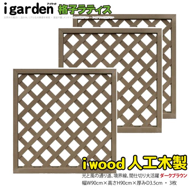 アイウッド 格子ラティス 人工木製 H90cmxW90cm 3枚セット ダークブラウン 樹脂製 腐らない 色あせない 目隠しフェンス 日除け 外構資材 10年以上の実績