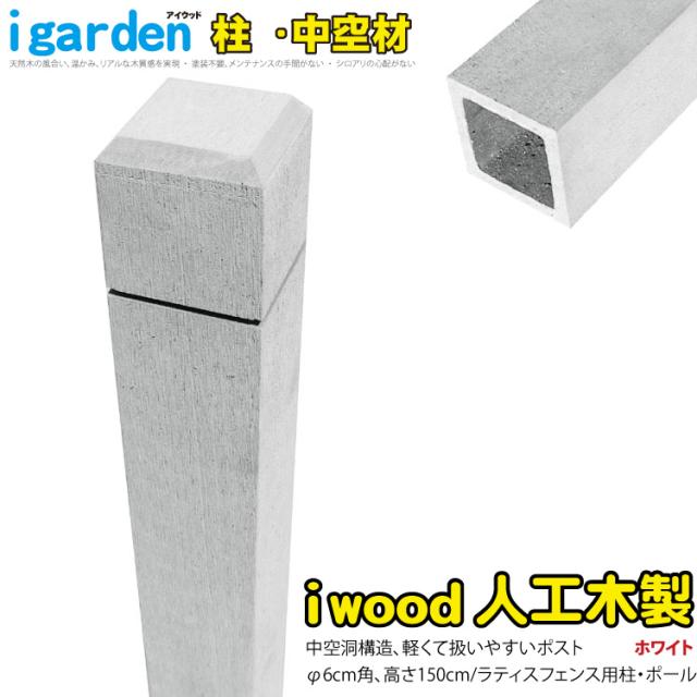 ラティス柱 人工木製 中空材 H150cmW6cm角 ホワイト 腐らない アイウッド ラティスポスト ポール 中空構造 人工木材 目隠しフェンス 支柱 芯材別売り