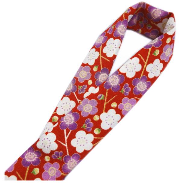 半衿 半襟 和柄 赤色地梅枝 日本製 振袖 成人式 卒業式 袴 着物 女性用 レディース 洗える 総柄