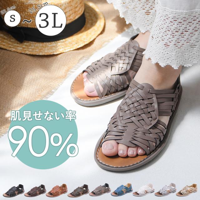 サンダル レディース ローヒール ぺたんこ かかとあり 外反母趾 幅広 甲高 歩きやすい 痛くない 柔らかい 脱げない 疲れない 軽量 軽い 走れる 滑らない 編み込み メッシュ 旅行 持ち運び 大きいサイズ 3L 黒 ブラック 白 おしゃれ かわいい 靴 春新作