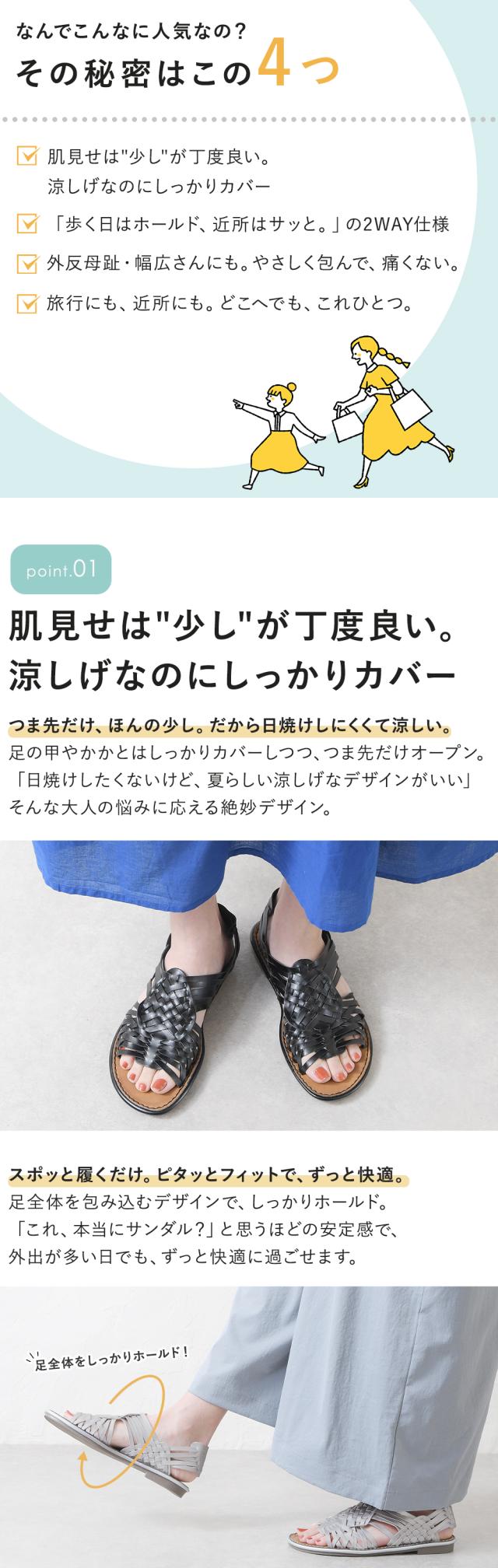 夏でも素足が出るのに抵抗のある方や幅広・外反母趾の方にもおすすめのサンダルです!