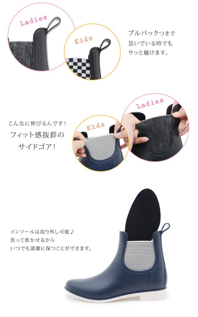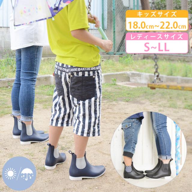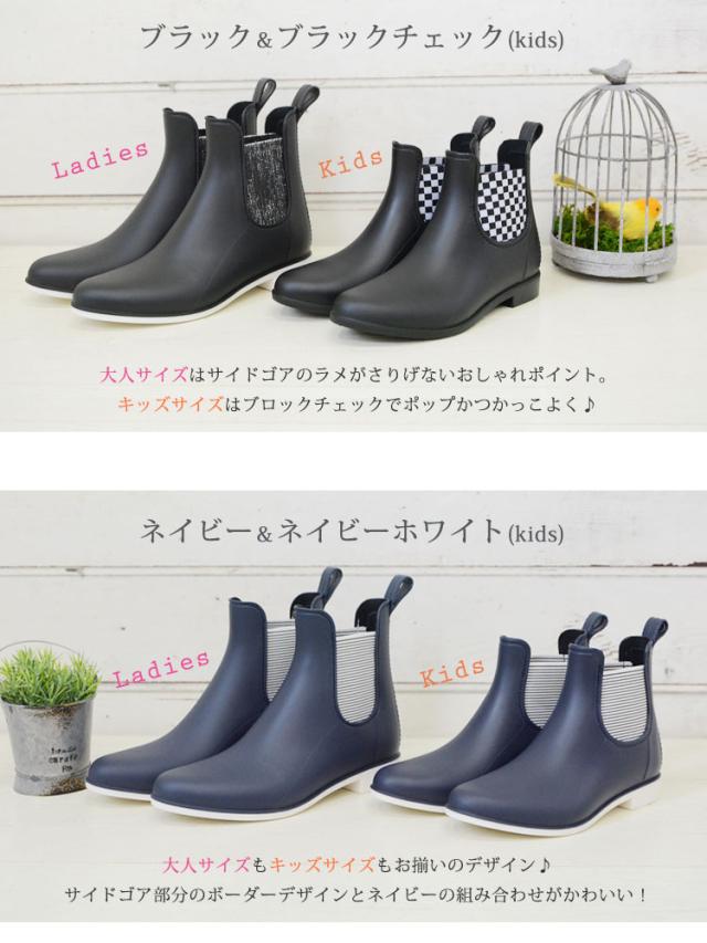 レインブーツ 長靴 キッズ 子供用 kids 22cm 女の子 レディース 防水 ローヒール サイドゴア ラバー かわいい 梅雨 雪 雨 靴 春新作