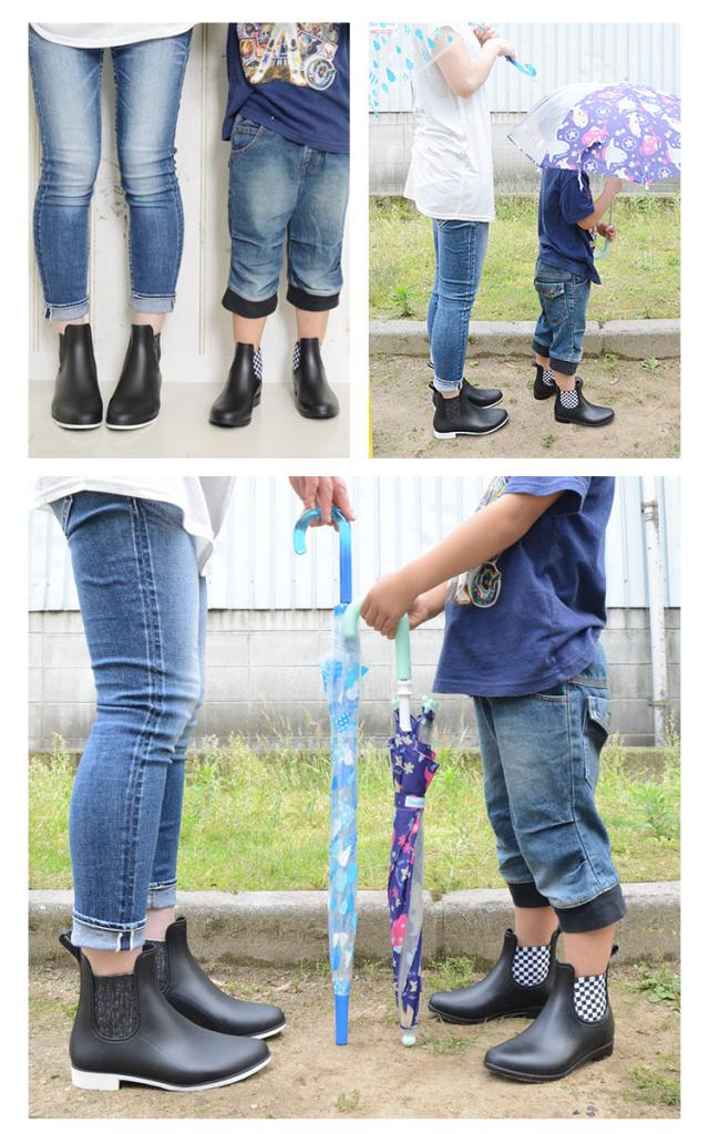 親子ペアで楽しめる!レインブーツ。フィット感抜群のサイドゴア!インソールは取り外し可能♪洗って乾かせるからいつでも清潔に保つことができます。アウトソールには滑り止め加工が施されているので濡れた地面などでも安心。