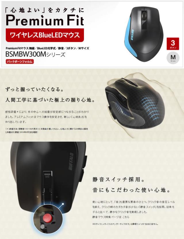 ワイヤレスマウス 無線 バッファロー Premium Fit Blue LED 光学式 Mサイズ BSMBW300MOR オレンジ