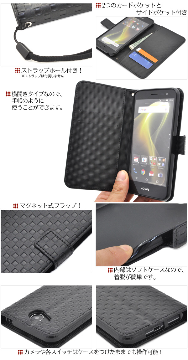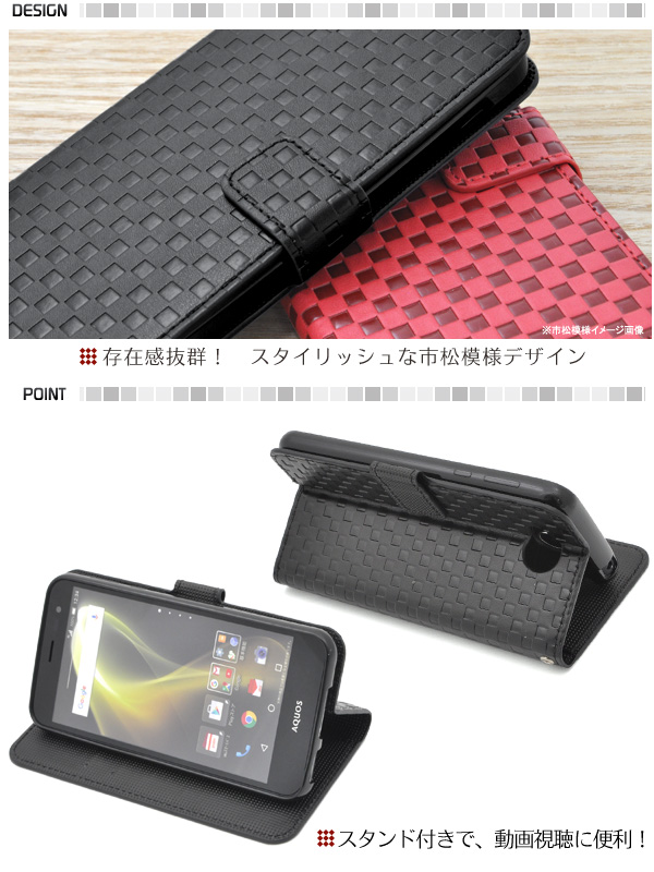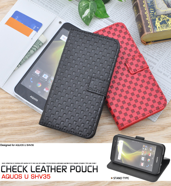AQUOS U SHV35用 市松模様デザインポーチ au エーユー アクオス ユー SHV35用シンプルな手帳型保護カバー
