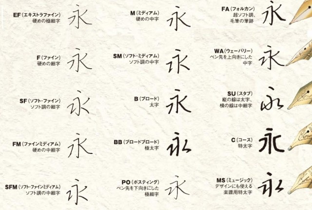 ペンの種類15種類…お仕事や手帳用にはF(細字)がオススメです…迷われたらご相談ください。