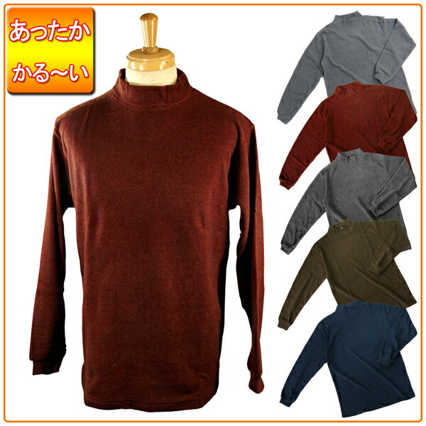 ハイネック フリース メンズ あったか ポカポカ 部屋着 冬衣料 起毛 紳士 メール便配送 (全色)カチオン細ボーダー 長袖 カットソー