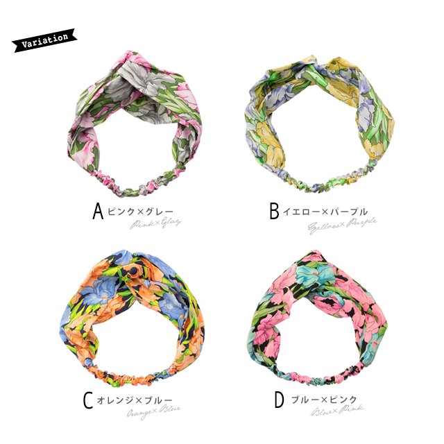 【ネオンカラーが夏にぴったりな花柄ターバン】ヘアバンド/クロス/リゾート/ヘアアクセサリー/ヘアアレンジ/髪留め/ヘアアクセサリー