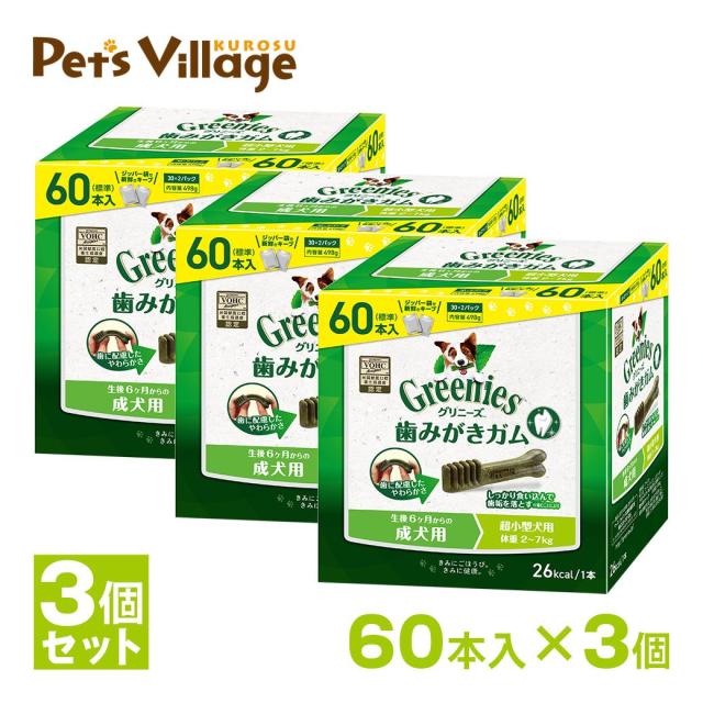 公認店 グリニーズプラス 成犬用 超小型犬用 2-7kg 60本入×3個セット ボックス オーラルケア
