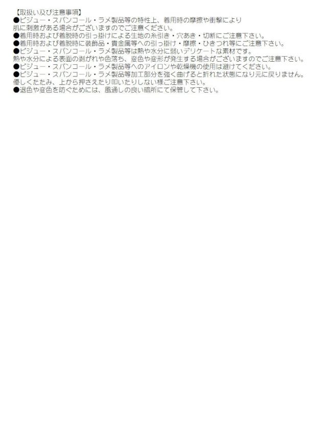 ◆ビジュー・スパンコール・ラメ製品等は過度な摩擦や洗濯によって脱落しやすくなる場合がございます。