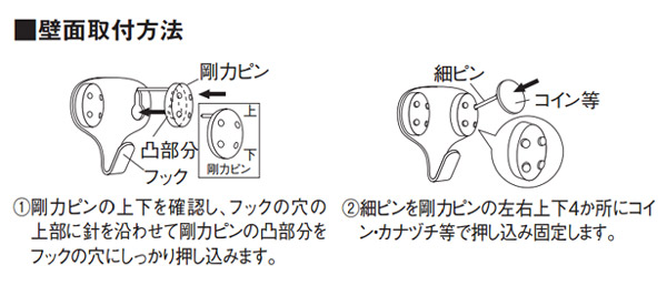 フック 剛力フック ダブル ピンタイプ 強力フック ( ピンフック 石膏ボード ベニヤ 石膏 壁 石膏ボード壁用 石こうボード ベニヤ壁 収納 用 強力 吊り下げ 壁掛け 鍵フック 日本製 )