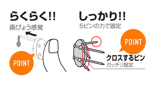 ●細いピンで留めるので、跡が小さく、壁を傷めません。