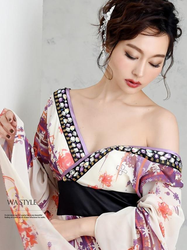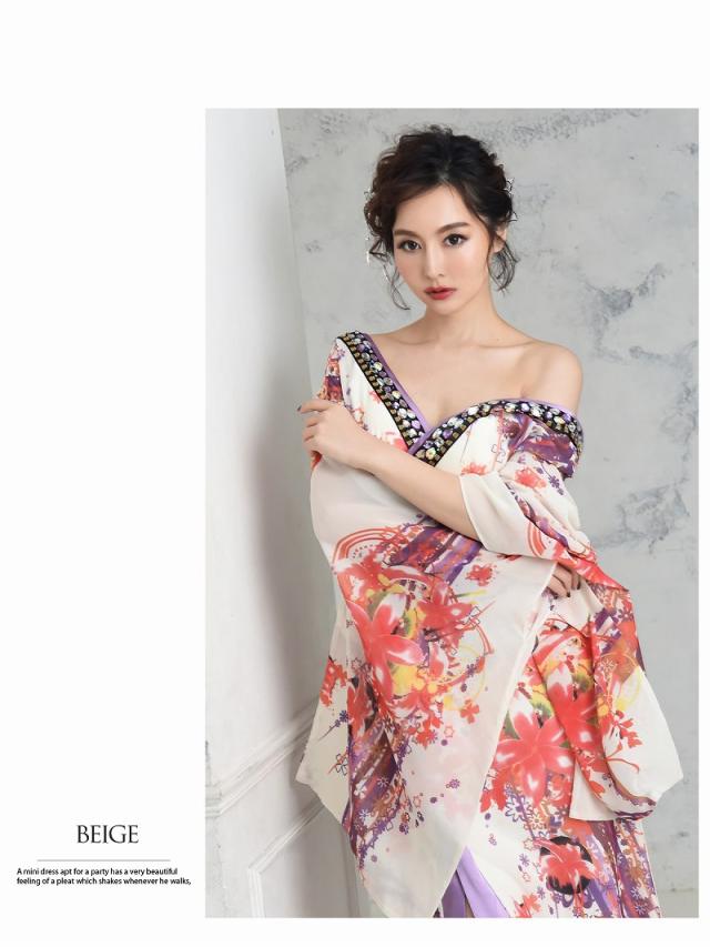 ☆谷間魅せも出来るビジュー付き和柄ドレスは着るだけで大人の色気漂う華やか和風ドレス。