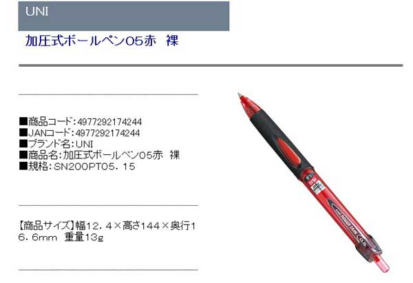 UNI 加圧式ボールペン05赤 裸 SN200PT05.15